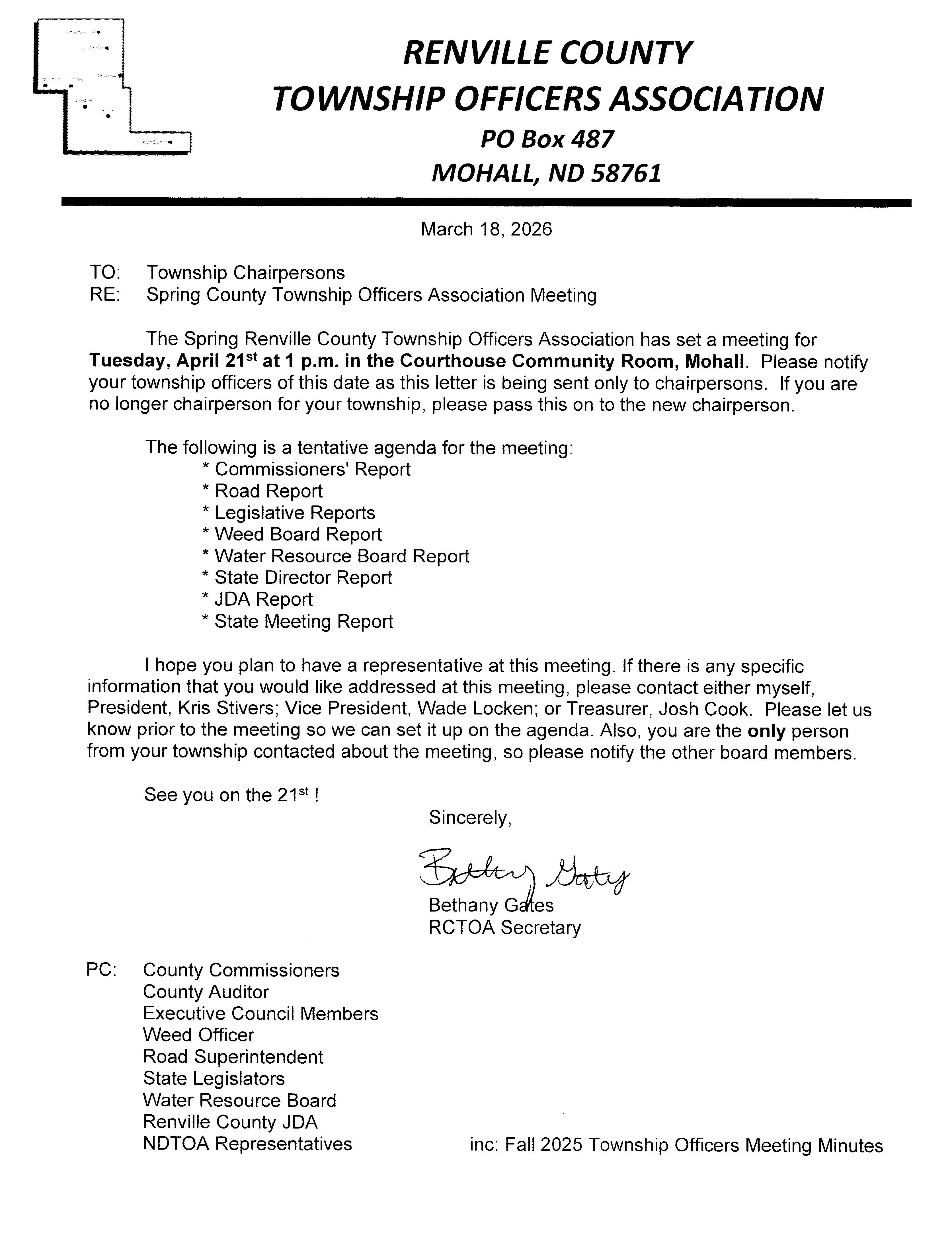 Send the details of your county association meetings to larry.ndtoa@gmail.com